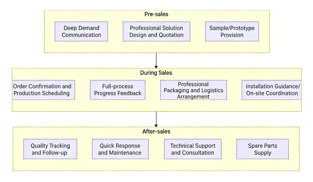 Voorafgaand aan de samenwerking zal een toegewijde YeHaoXuan-consulent één-op-één service bieden, uw behoeften nauwkeurig beoordelen, op maat gemaakte oplossingen en transparante prijzen bieden, en voorbeelddemonstraties aanbieden om u te helpen weloverwogen beslissingen te nemen.