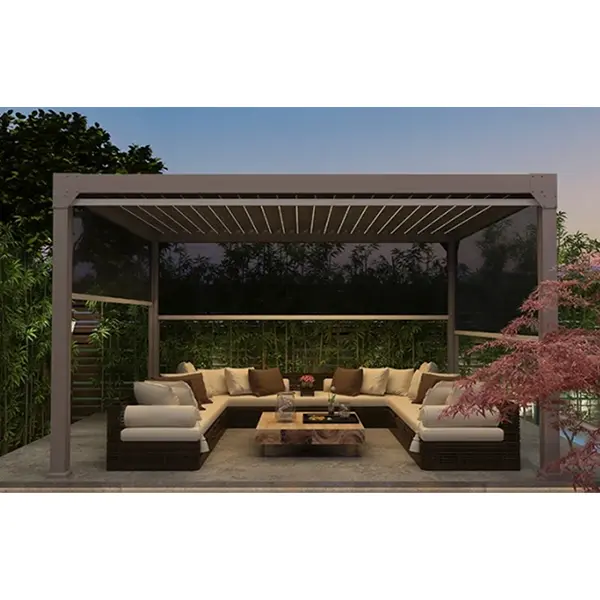 Als een in China gevestigde fabrikant die gespecialiseerd is in slimme buitenfaciliteiten, hebben we meerdere upgrades aangebracht aan de veiligheid en controle van onze elektrische intrekbare tuinpaviljoen. Het tuinpaviljoen is uitgerust met zowel afstandsbediening als handmatige bediening, waardoor bediening in noodgevallen mogelijk is in geval van een stroomstoring. Het beschikt ook over automatische limietbeveiliging bij harde wind, waardoor zowel gemakkelijke bediening als veiligheid wordt gegarandeerd, waardoor de gebruikerservaring buitenshuis volledig wordt gegarandeerd. Bovendien kunnen we, als betrouwbare leverancier van slimme tuinpaviljoens voor buiten, verschillende functionele accessoires, zoals verlichting en rolluiken, aanpassen en integreren volgens de behoeften van de klant, zodat het product perfect aansluit bij de vrijetijdsbehoeften buitenshuis van villa's, commerciële instellingen en andere verschillende scenario's.