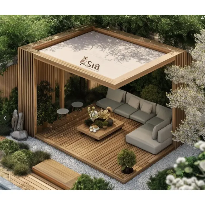Het tuinpaviljoen ondersteunt ook uitgebreide, gepersonaliseerde aanpassingen van afmetingen, dakmateriaal en kleur. Het kan praktische accessoires integreren, zoals slimme verlichting en onzichtbare ventilatoren, en zich aanpassen aan diverse scenario's zoals binnenplaatsen van villa's, terrassen, tuinen en commerciële recreatiegebieden. Het biedt een alles-in-één oplossing voor zowel zonneschermen als bescherming tegen regen, maar ook voor vrije tijd en bezienswaardigheden, waardoor het een standaardkeuze is voor moderne buitenruimtes die esthetiek en functionaliteit combineren.